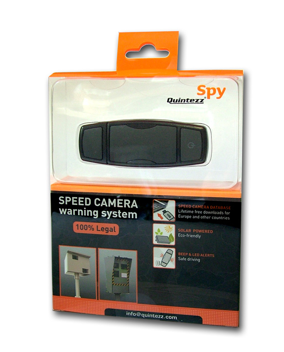 GPS lokalizátor stacionárnych radarov QUINTEZZ SPY je solárne GPS zariadenie s databázou stacionárnych radarov v Európe - na základe GPS súradníc lokalizuje pozíciu stacionárneho radaru a upozorňuje vodiča na dodržiavanie povolenej rýchlosti na meranom úseku. Jednoduchá montáž na čelné sklo vozidla pomocou prísaviek. 100% legálne!